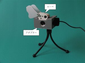 ZOOMなどのリモート会議で小さいものをwebカメラで映す時に、webカメラに手持ちのルーペ(拡大鏡)を取り付けるためのアダプターです。